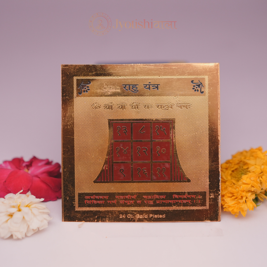 The Rahu Yantra is a powerful Vedic tool used to pacify the malefic effects of Rahu, the shadow planet known for causing confusion, illusions, delays, and karmic challenges. This sacred geometric diagram helps in neutralizing Rahu Dosha, promoting mental clarity, focus, and emotional stability. It is especially beneficial for those facing sudden ups and downs, legal issues, mental stress, or spiritual blockages. When energized and worshipped with devotion, the Rahu Yantra brings protection, inner strength, and karmic balance.